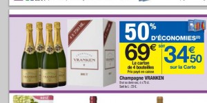 Bon plan champagne dans les hyper carrefour du 4 au 16 juillet 2012 : en effet le carton de 4 bouteilles vranken vendu 69 euros fait l’objet de 50% de crédit sur la carte fidelité ..
