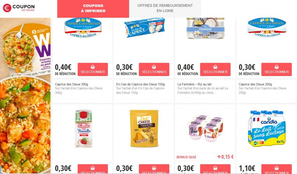 Sur celui ci il y a des coupons de réduction sur des produits d’un tres grand nombre de marques: coca cola, pasquier, boursin , harrys, bonduelle , super croix, laitiere, charal, caprisun , capsules Tassimo , l’or , pasquier , Evian …
