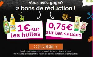 Lesieur propose en effet un concours en ligne, où on gagne à coup sur des bons de réduction : 1 bon de réduction de 1€ valable sur les huiles et 1 bon de réduction de 0.75€ valable sur les sauces (mayonnaises , sauces barcebues et autres ) …