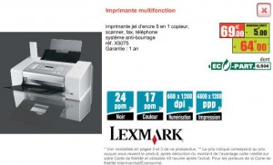 L’imprimante Lexmark X5075 revient à moins de 60 euros les 4 et 11 mars 2010 pour les porteurs de la carte fidelite dans les magasins intermarches