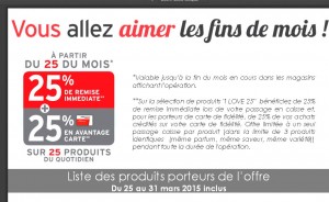 Comme chaque fin de mois, opération 25% de remise immediate + 25 % sur la carte de fidelité sur une selection de produits chez intermarché ..