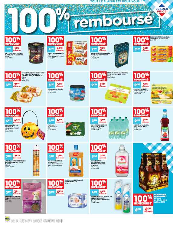 Leader Price : Catalogue 100% remboursés du 2 au 14 octobre