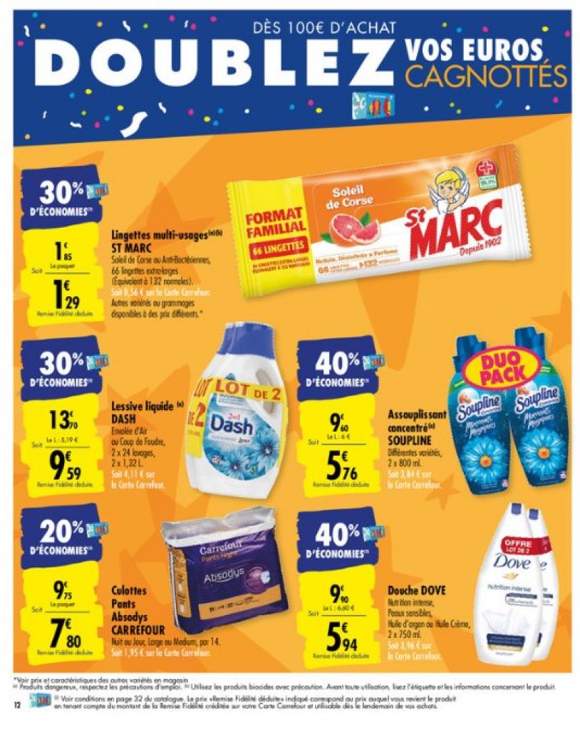 Un prospectus qui propose déjà des produits avec 70% de crédits : des couches, du shampoints, des cremes soins , sur du papier toilettes, des la lessive …