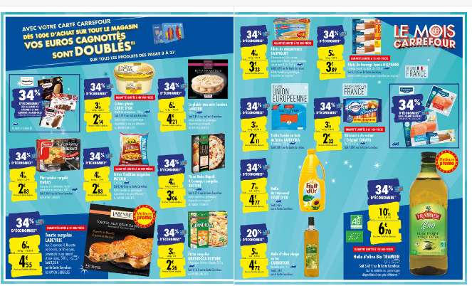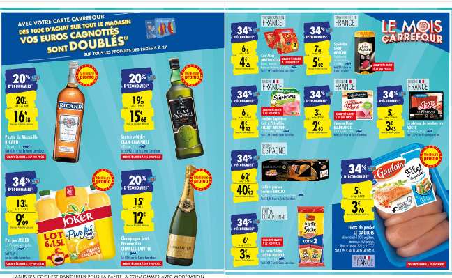En plus plus sur les produits des pages 7 à 28 qui contiennent de nombreux articles avec jusqu’à 34% de crédit sur la carte , ce credit est doublé si on achetepour plus de 100€ … Cela va donc faire pour 68% de crédit et cela concerne des produits alimentaires ou des boissons …