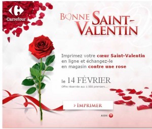 lolll, ca va revenir plus cher d’imprimer le bon que d’aller s’acheter la rose chez un fleuriste, ils sont compliques chez carrefour, les autres grandes surfaces l’offre comme ca, tout simplement
