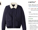 Pour les hommes à la recherche d'un blouson, il semble y avoir une très bonne affaire sur amazon, pour un Blouson Celio Le Celio JUCHIC affiché à 15.99€ ...