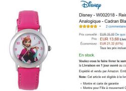 Une idée cadeau pour noel pour une petite fille de 6- 7 ans ? Sur amazon, tres bonne affaire pour une montre Disney Reine des Neiges vendu à 13.6€ au lieu de ...