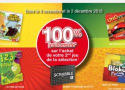 Une offre de remboursement partielle concernant des jeux de sociétés Mattel : SCRABBLE 70e ANNIVERSAIRE ; BLOKUS ; SOS OUISTITI ; UNO EXTREME , 1,2,3 Prout ...