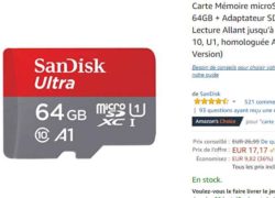Bonne affaire pour une carte mémoire de grosse capacité et rapide : 21.99 euros une micro sd Sandisk Ultra 64go classe 10 .. De la marque sandisk donc .. ...