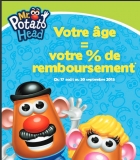 Offre jouet: jusqu'au 14 juin 2014 , pour l'achat de deux jouets Mr Patate, le moins cher est remboursé en différé ... L'offre est valable un peu partout ...