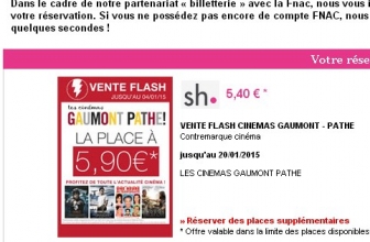 5.4 euros la place de cinéma gaumont pathé pour y aller du 5 au 20 janvier 2015 ... Une promo que l'on peut voir sur de nombreux sites, mais generalement les ...