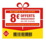 Un bon de réduction qui peut interesser ceux qui font leur courses chez leader price : 8 euros de remise pour 50 d'achats ... Un bon à utiliser du 1er au 7 ...