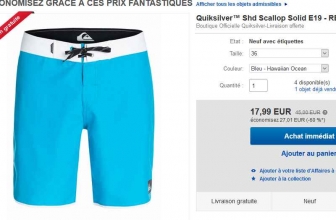 Besoin d'un nouveau short de bain pour cet été pour aller à la plage ? Vous pouvez faire une bonne affaire du coté de ebay pour un boardshort de la marque ...