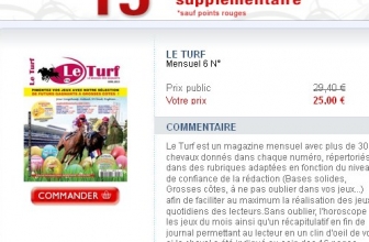 Un abonnement qui peut interesser ceux qui aiment faire des paris hippiques: sur kiosque fae , on peut voir l'abonnement au magazine LE TURF pour 25 euros pour ...