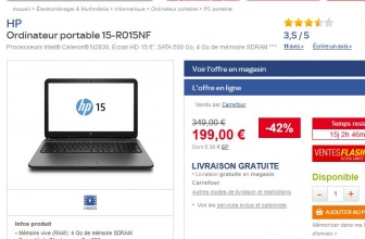 Bonne affaire : un pc portable 15 pouces de la marque HP à moins de 200 euros sur le site carrefour online .. le hp 15-RO15NF ... un ordinateur portable ...