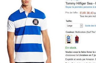 Un bon prix pour un polo pour hommes de la marque TOMMY HILFIGER : 36€ sur amazon.. Le polo TH SEA de couleur bleu et blanc ( polo à rayure ) , avec le logo ...