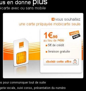 Orange propose à nouveau sa puce sim sans engagement prepayée mobicarte à 1.90 euros port inclu .. Une puce qui inclu 5 euros de communications ..