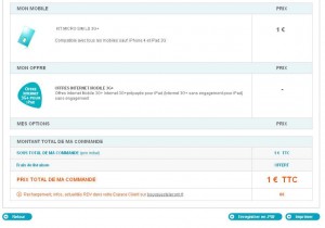 Apres que le credit soit epuisé il est proposé en ligne de recharger pour 6€ pour 1 jour de connexion (300mo de tranfert maxi – debit reduit au dela), ou 29.90 euros pour 31 jours de connexion (1.5 go de transfert – debit reduit au dela ).