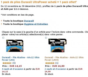 1 pack de piles duracell ultrapower acheté = 1 offert : 14.15 euros les 24 piles AA