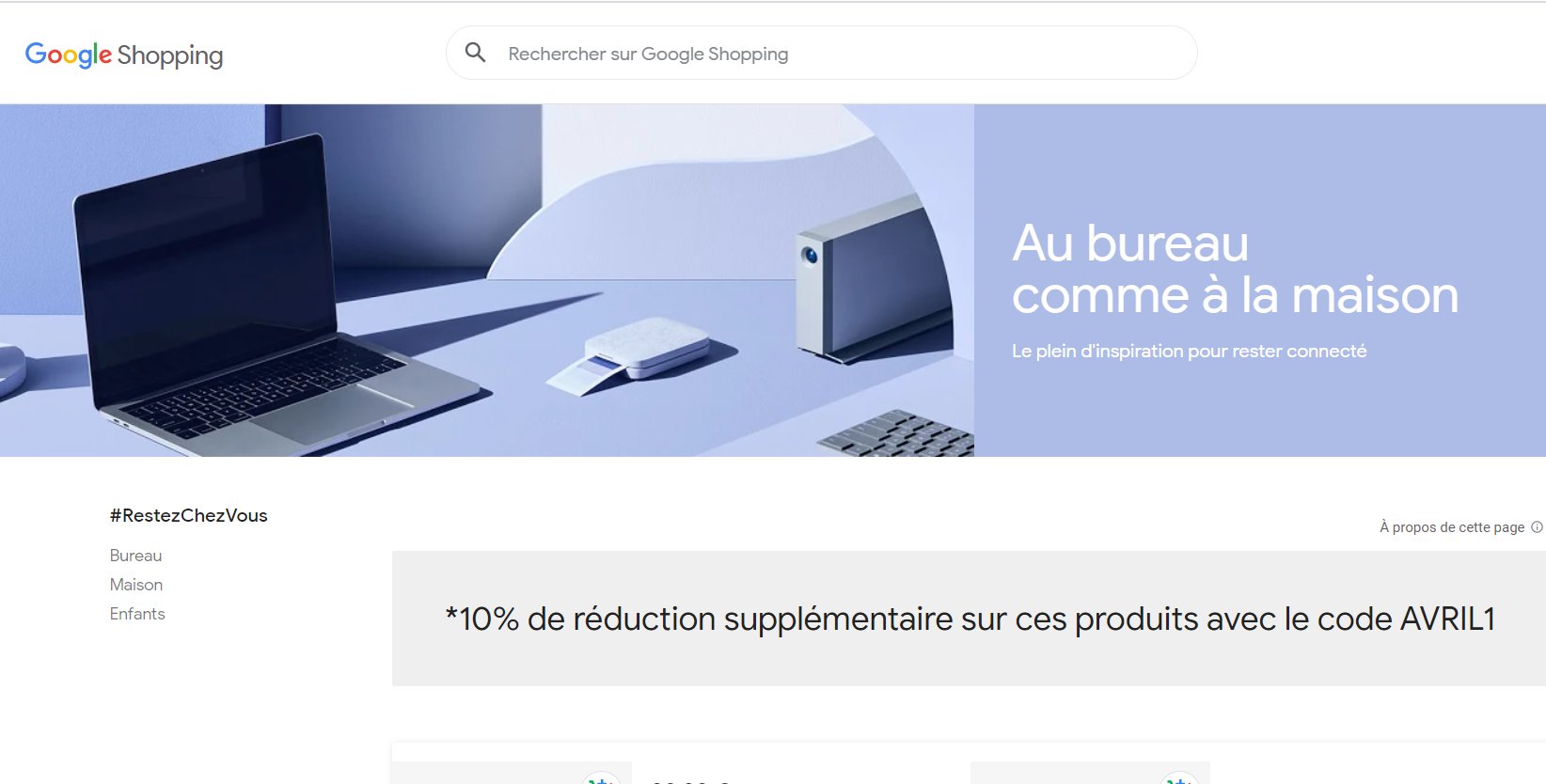 du 22 avril au 5 mai , il y a le code de réduction « AVRIL1 » qui donne 10% de réduction supplementaire sur certaines catégories de produits sur Google Shopping… Sur des articles vendus par Boulanger , Darty et autres marchands