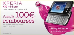 100 euros de remboursement sur smartphone xperia x10 mini pro