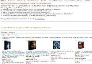 100 euros pour 5 blu ray 3d + un lecteur blu ray ou casque .. toujours dispo