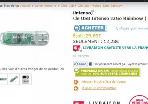 Si vous avez besoin d’une clé usb , très bonne affaire encore une fois sur zoombits, qui propose à 12.28 euros une clé 32go usb 2 de la marque intenso…