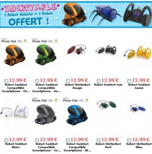 12.99 euros les deux robots qui se pilotent depuis un smartphone ou tablette ( ipod , ipad, iphone ou android )