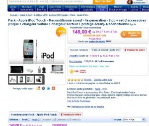 129 euros port inclu l’ipod touch 4 8go reconditionné avec accessoires