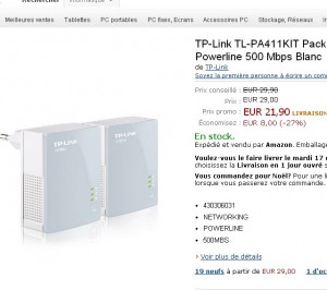 Et encore un super prix pour des boitiers cpl .. En fait le meilleur prix jamais vu pour des plugs 500 mbits .. 14.65 euros port inclu .. Sur amazon donc le 15/12 on a en vente flash le lot de 2 boitiers de la marque TP-LINK à 21.9 euros ..
