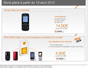 A noter que pour cette vente flash, orange propose egalement la puce mobicarte seule à 4.9 euros au lieu de 7.9 euros .