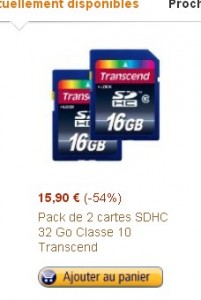 15.9 euros le lot de 2 cartes SD 16go classe 10