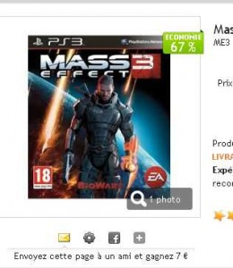 Encore une bonne affaire jeux videos aupres du vendeur produnet sur priceminister .. En effet on peut acheter le jeu d’action MASS EFFECT 3 pour console sony ps3 pour 17.90 euros port inclu seulement ..