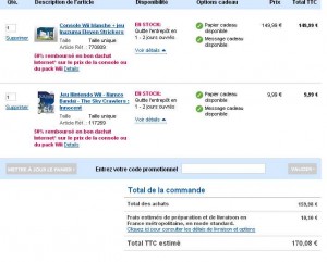 170.08 la console wii inazuma + un autre jeu mais avec 75 euros de bon d’achats en prime : le 03/12