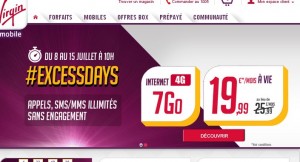 Encore un forfait mobile en promo … Virgin mobile propose pour 19.99 euros par mois un forfait avec appels et sms mms illimités, et 7go de traffic internet en 4G (si on a un appareil compatible, sinon cela sera en 3G) …