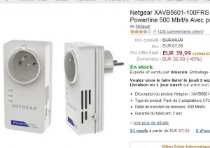 Et encore une bonne affaire pour des boitiers cpl sur amazon : le 4 septembre en vente eclair on a pour moins de 40 euros port inclu un lot de deux boitiers cpl 500 mbits de la marque netgear .. Plugs cpl disposant d’une prise femelle et ne monopolisant donc pas la prise secteur ..