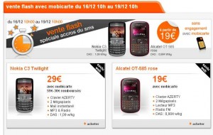 2 mobiles à clavier sans engagement tres interessants en vente flash chez orange jusqu’au 19/12 à midi : Tout d’abord à 19euros est vendu l’alcatel OT585 , mobile sympa avec fonction radio fm , lecteur mp3 , avec port micro sd , appareil photo 2 millions de pixels ….