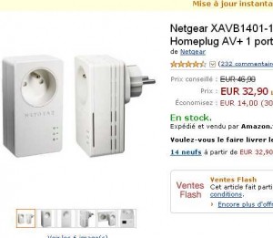 Besoin de plug cpl pour étendre votre réseau , ou pour connecter vos appareils avec un débit plus stable et plus rapide qu’en wifi ? Sur amazon en vente flash jusqu’au 3 mars, se trouve en vente un pack de 2 boitiers cpl 200mbits de la marque netgear à 32.90 euros port inclu