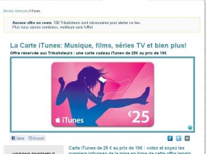Bonne affaire pour les possesseurs d’iphone , ipod , ipad … la carte itunes 25 euros est vendue à 19 euros seulement sur le site de deals tribalista à compter du lundi 19 septembre .