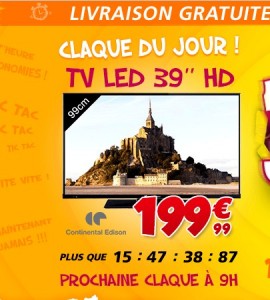 Home » High Tech » 200 euros une tv 39 pouces 200 euros une tv 39 pouces Bons plans astuces 6 août 2014 High Tech SaveSavedRemoved 0 Une tv 39 pouces en vente flash à 199.99 euros sur cdiscount … Tv continental edison de taille moyenne donc … Tv avec 2 ports hdmi , 1 port usb .. Tv 50hz pas chere interessante comme seconde tv pour une chambre par exemple Voir cette tv sur cdiscount