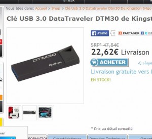 22.62 euros port inclus la clé mémoire 64go USB3 Kingston