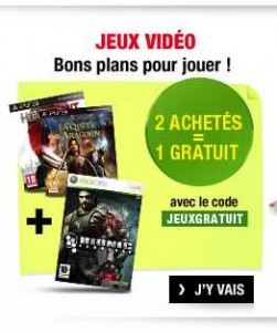 Il faut donc mettre les 3 jeux dans son panier d’achat et saisir le code promo « JEUXGRATUIT » pour avoir la remise correspondant au prix d’un jeu ..