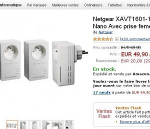 Offre interessante sur amazon qui propose un pack de 3 plugs cpl netgear 200mbits pour 49.9 euros port inclu ..