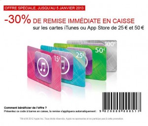 30% de remise sur les cartes cadeau itunes jusqu’au 5 janvier à la fnac