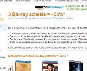 Offre interessante pour completer sa collection de blu ray … sur amazon on a 33% de remise sur l’achat de 3 blu ray au choix parmi des centaines dans tous les genres … enfants, comedie, fantastiques, drame , policier …. Avec aussi des titres 3d …