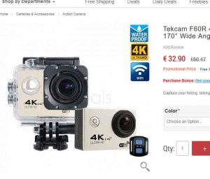 33€ une camera sportive 4K wifi avec capteur sony ( Tekcam F60R)