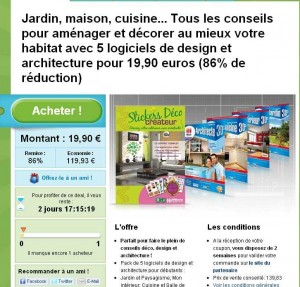 Envie de reorganiser votre interieur, votre jardin , votre cuisine …. Groupon propose une offre qui vous interessera surement avec pour moins de 20 euros, 5 logiciels sur ce theme de l’editeur micro application ..