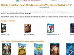 50 euros de remise pour 100 d’achats en blu ray , dvd … jusqu’au 26 janvier