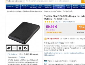 52 euros le disque dur 1to 2.5 pouces Toshiba usb3