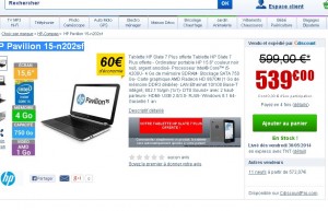 539 euros le pc portable 15 pouces core i5 avec une tablette tactile HP en prime